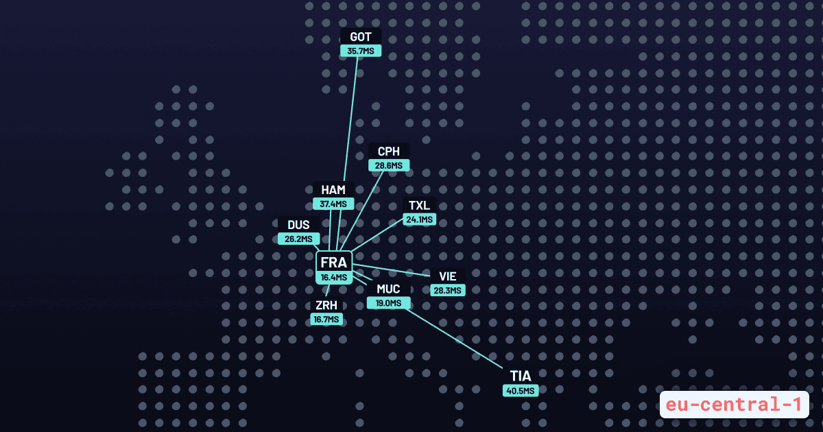 在 Prisma,我们运营的服务覆盖了中国以外的大部分 AWS 区域和所有 Cloudflare PoP。因此,我们拥有大量的 Cloudflare 和 AWS 之间请求的延迟数据。X 上的这个问题促使我们开始在每年的云连接报告中发布这些数据。