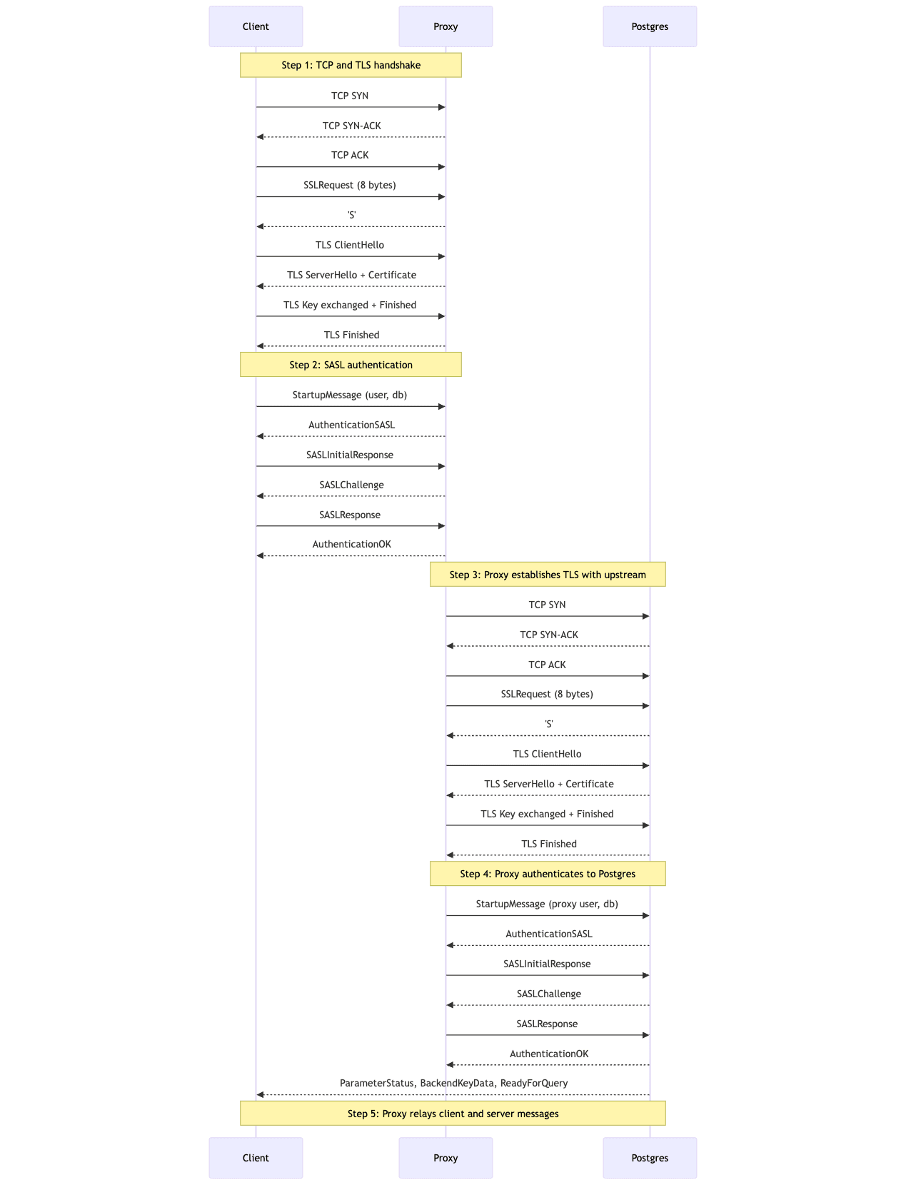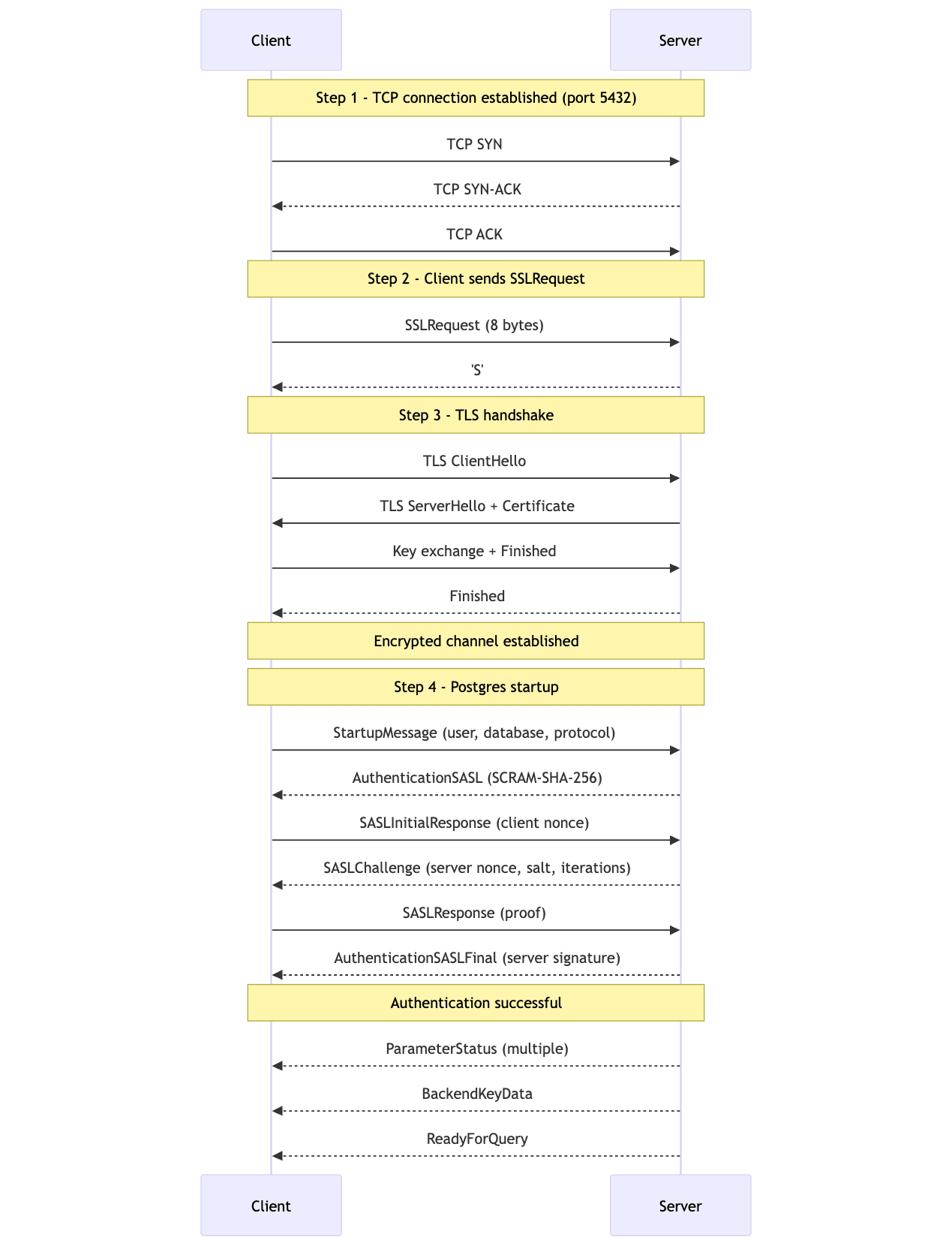让我们分解一下典型的Postgres连接。这里我们将使用现代协议而不是1998年的原始协议。