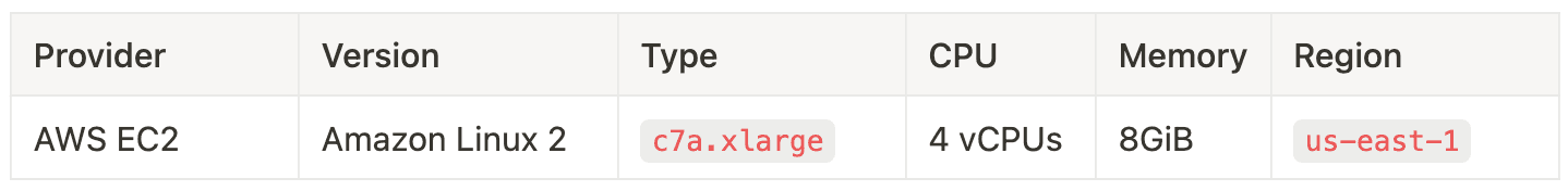 为了收集数据,我们在生产基础设施上执行了基准测试,以模拟实际使用场景。脚本已在具有此规格的 EC2 实例上执行