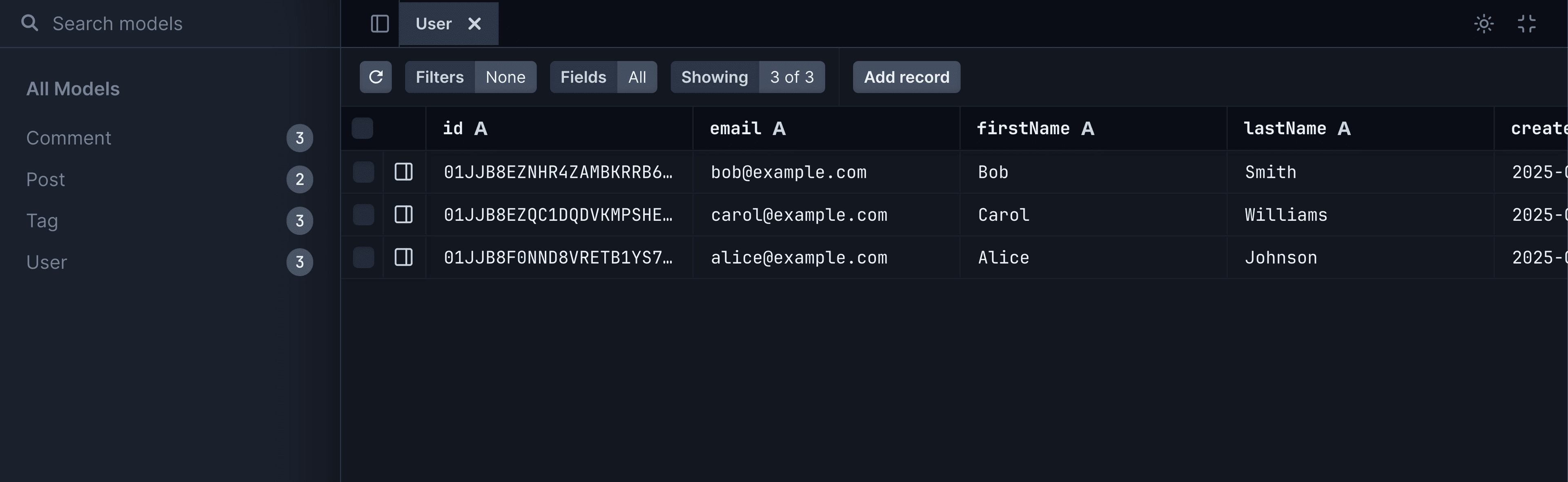 为了帮助解决这个问题,我们在 Prisma 发展的早期,即 2020 年,发布了 Prisma Studio。当时,Prisma Studio 被设想为“现代 phpMyAdmin”——一种让开发者能够直接在浏览器中查看和编辑任何环境数据的工具。
