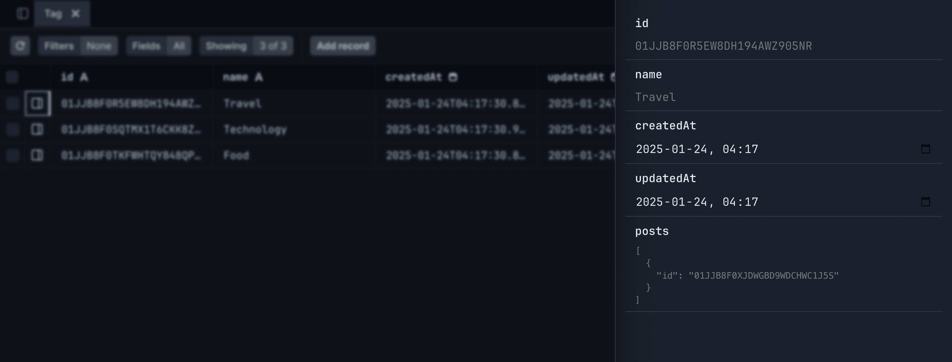 虽然这些更新增强了 Prisma Studio 的核心体验,但我们为用户已经了解和喜爱2022年功能感到自豪——特别是我们对关系数据的强大处理。无论您是查看嵌套关系、修改连接的记录还是导航复杂的数据关系,Studio 都使这些工作流程直观且易于访问。现在我们渴望在此基础上继续发展。无论是进一步扩展我们的关系功能、添加新的可视化选项还是引入全新的功能,我们都希望听到 Studio 如何更好地满足您的需求!