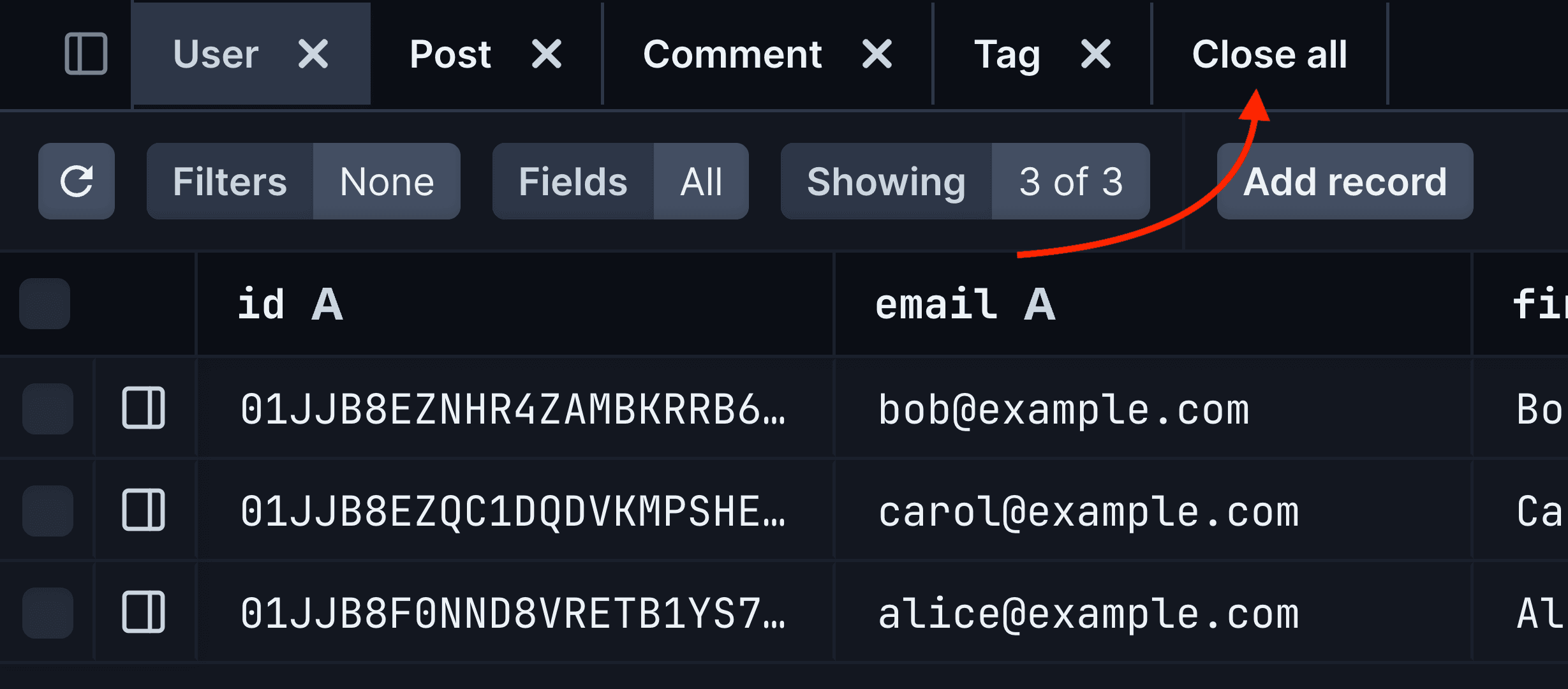 您的 Prisma Studio 会话很可能和您的浏览器一样打开了许多选项卡。一个接一个地关闭它们很麻烦。