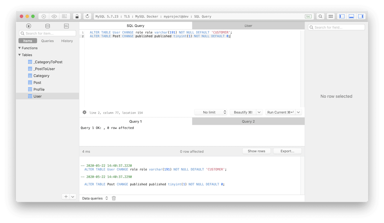 您会注意到此版本的 Prisma ORM 2 模式的一件事是,所有关系字段都以其各自的模型命名,例如