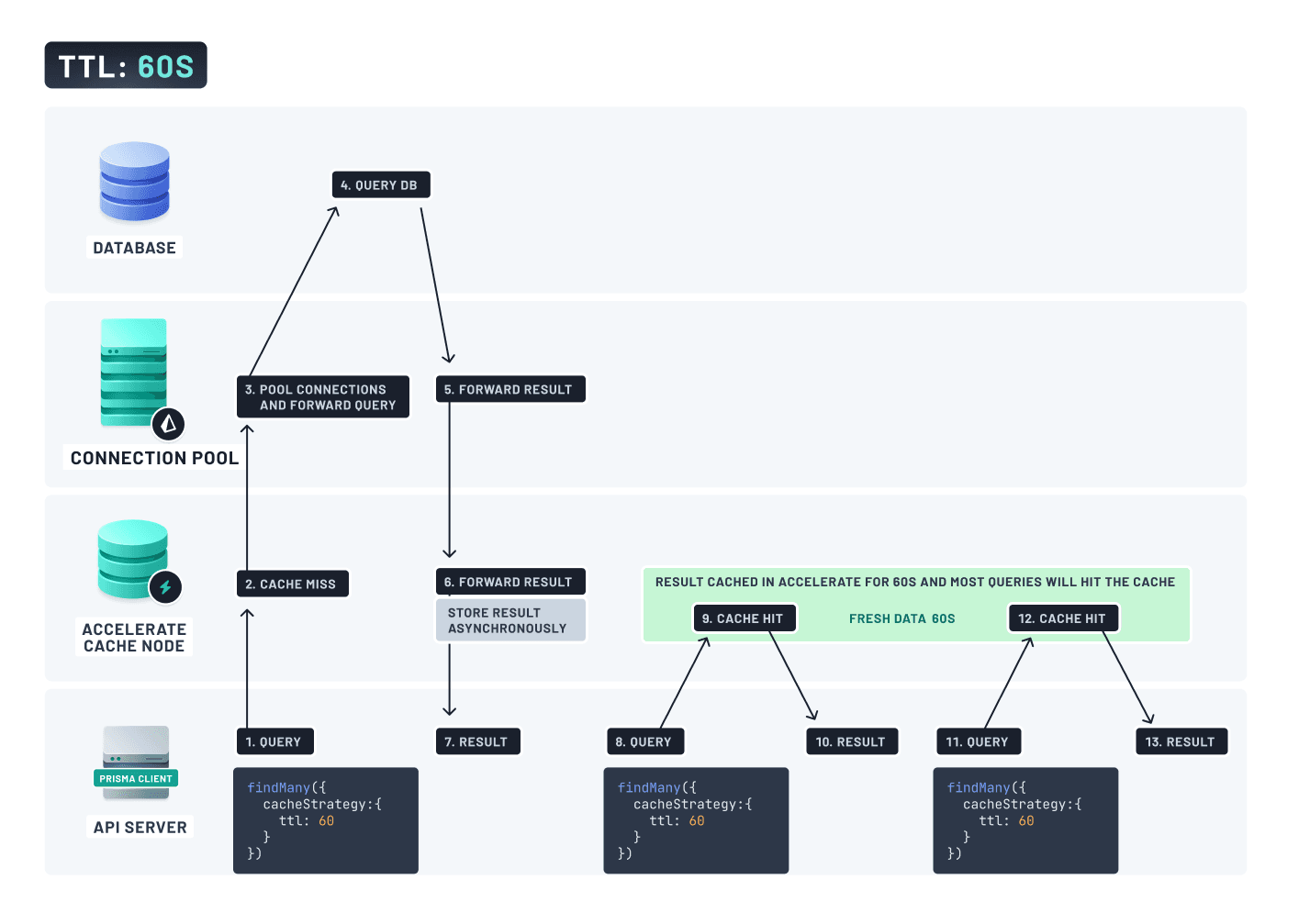 此功能由通过 Prisma Accelerate 启用的内部缓存层提供支持,但除非您使用自己的数据库,否则无需直接与 Accelerate 交互。